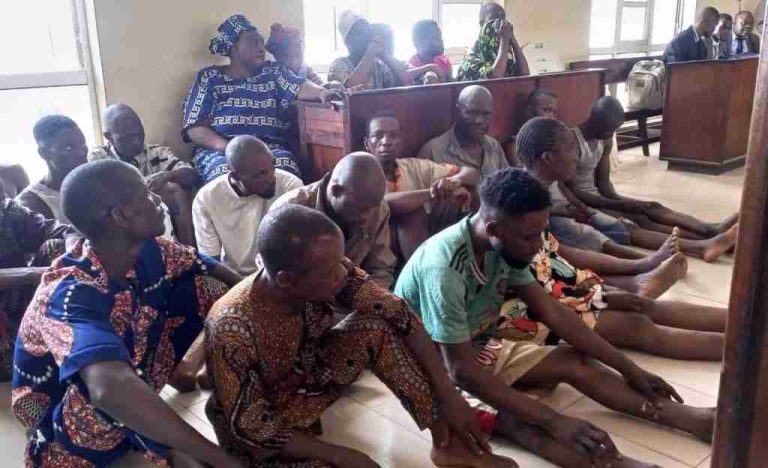 NAN reports that the defendants are, Rofiat Ayanwale, 25, ‘F’; Ismaila Adepoju, 45; Saburi Ayanwale, 28; Adeola Elegbede, 27; Anthony Fatoki, 34, and Mathew Olalere, 54.