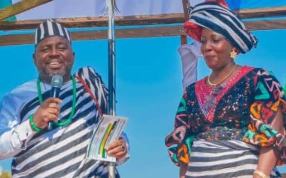 Technical Adviser to Gov. Hyacinth Alia on Media, Publicity and Strategic Communications, Chief Solomon Iorpev, with his wife shortly after the conferment of the traditional titles.