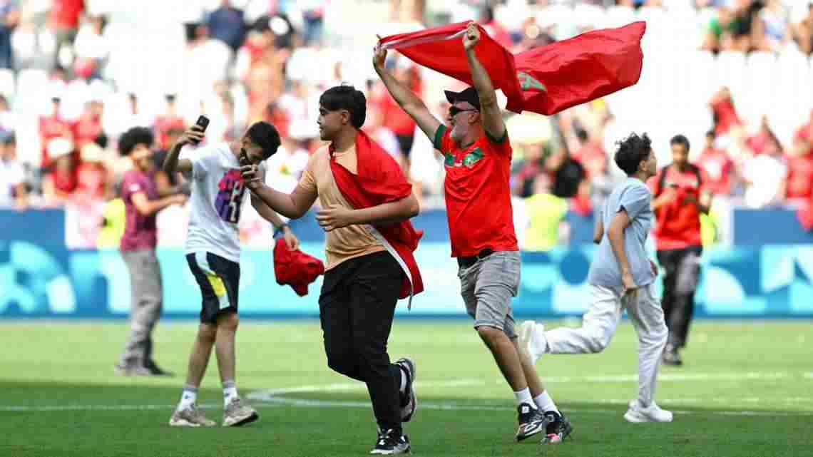 A pitch invasion by Moroccan fans after Argentina’s Cristian Medina had scored deep in stoppage time triggered a two-hour delay as the game in Saint-Étienne was eventually completed in an empty stadium.
